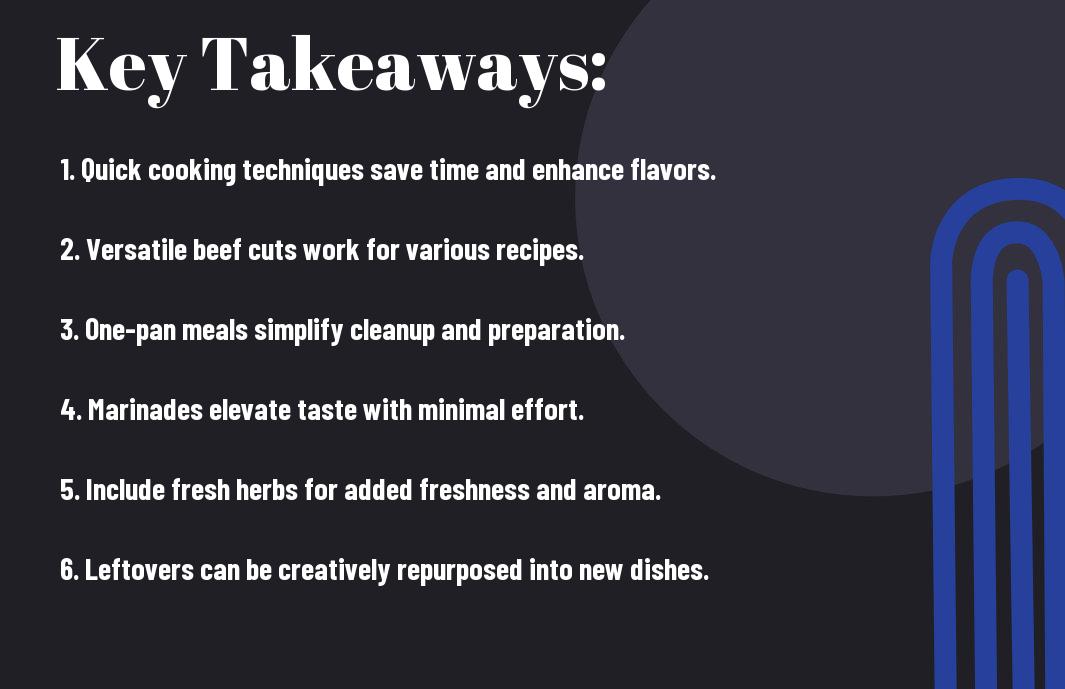 Just imagine transforming your weeknight dinners into mouth-watering feasts without spending hours in the kitchen. In this post, I’ll share with you my top 10 quick and easy beef recipes that will satisfy your cravings and save you time. Each recipe is designed to be straightforward and can be prepared in minutes, allowing you to create delicious meals for your family or friends, with minimal effort. Let’s dive in and get cooking!